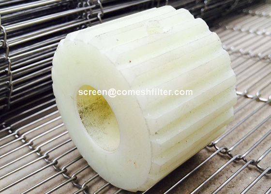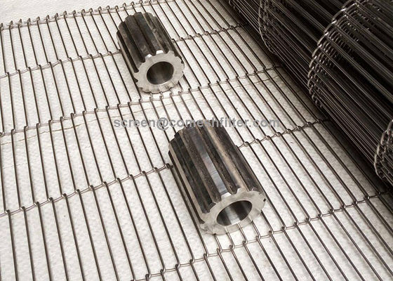 Flat flex wire mesh conveyor belt has a light weight single layer construction and are positively driven by sprockets.The belts have an open structure (70 - 85% open area) and are frequently used in cooling,baking,draying,heating,decorating,battering and packing machines for light products.